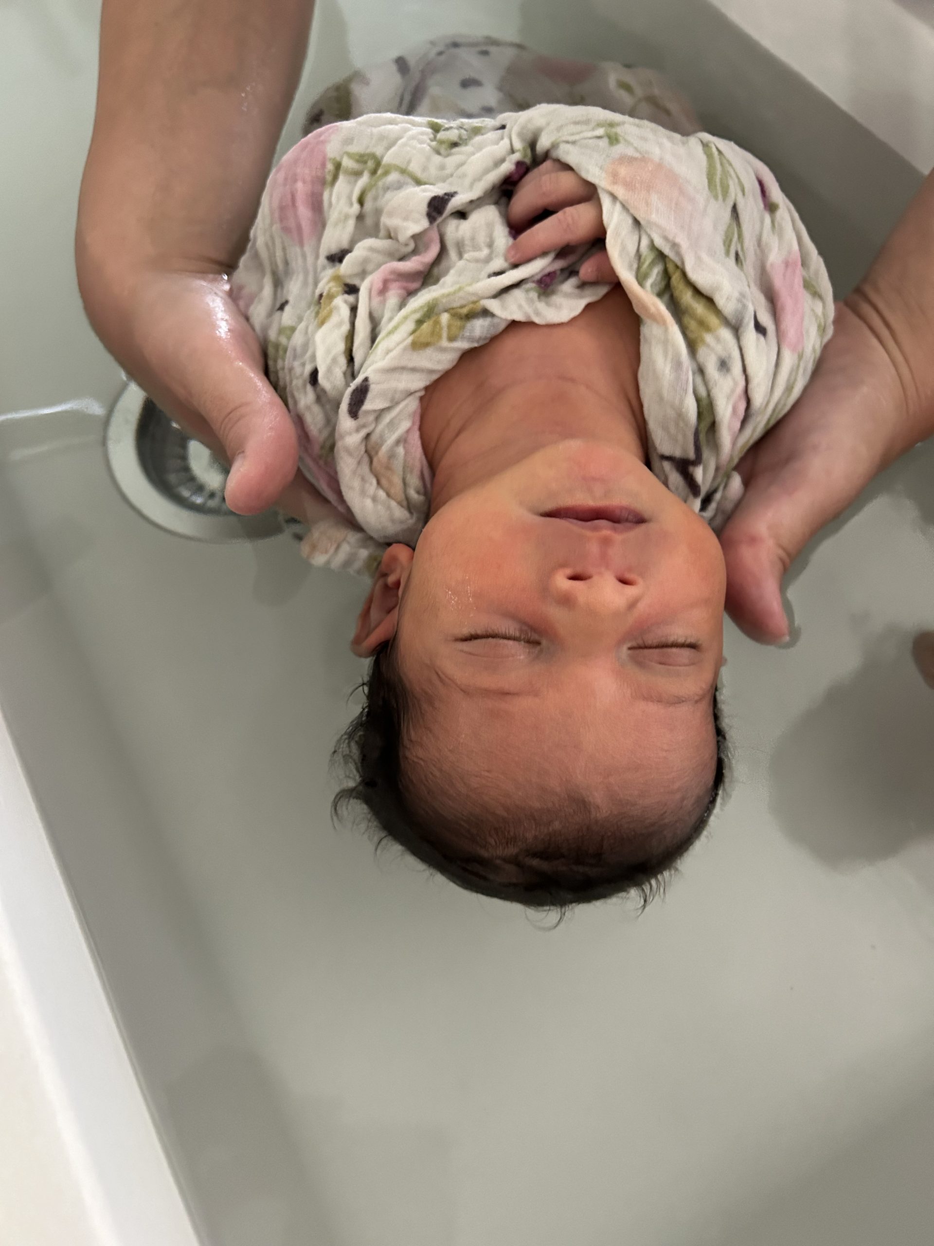 C’est un bain de patience. Le temps s’arrête. Le bébé exprime.